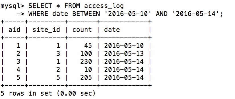 下面的 SQL 语句选取 date 介于 '2016-05-10' 和 '2016-05-14' 之间的所有访问记录: